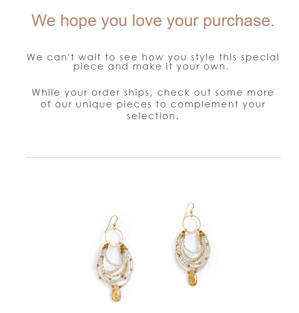 This was a post-purchase email flow I wrote for a sustainable, artisan jewelry brand. The client wanted simple, minimal but engaging copy to capture customers' attention.